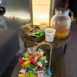 The shop provides tea, biscuits and drinks all you can eat and drink😆