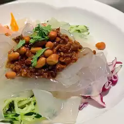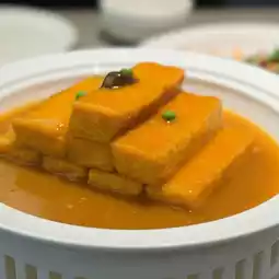 Handmade tofu with abalone sauce and spring water. The tofu is smooth and tender, and the abalone sauce is rich and mellow. The two are perfectly blended.