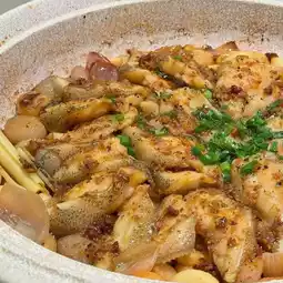 Black pepper baked fish head. The fish meat is tender and the black pepper sauce is rich in flavor, which complements the fresh and fragrant fish soup. This dish gives people a warm feeling of home cooking.