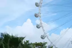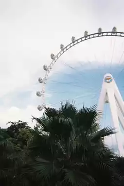 The environment is spacious, with white buildings complemented by green vegetation, a beautiful Ferris wheel, and a sea view. It's really suitable for couples to take a walk and relax.