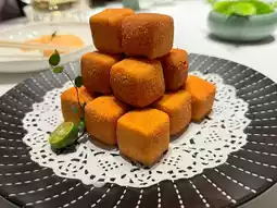 Printed Center Jen Lu - Delicious This time I tasted many small dishes here, including Jinsha Tofu Glass Breast Pigeon Lobster Soup Bubble Rice Black Truffle Vegetarian Goose Sesame Fried Chicken Salt Baked Prawns Since we are a family, we can order more different kinds of dishes