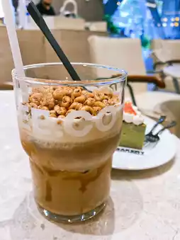 The maple syrup oatmeal on top is crunchy and delicious😍, sweet and crunchy. Mixed into the coffee drink, it has more oatmeal aroma and enhances the taste, nice👍🏽.