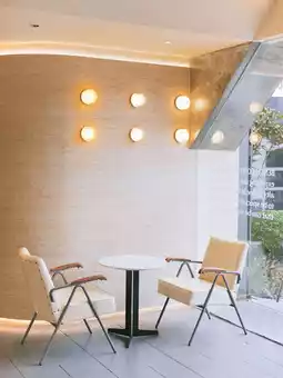 The museum exit and cafe are located on the rooftop platform of the square. Although the area is not large, under the blue sky and white clouds, with a little lawn and pond, as well as a wooden walkway and open-air cafe, the whole environment is so refreshing☺️.