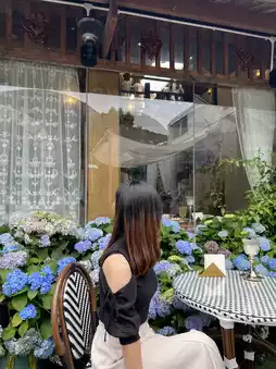 Located in Nam Shan District Lo Wu about 1 hour drive to reach the restaurant door has been seen covered with hydrangeas there are several photo spots and food desserts are good