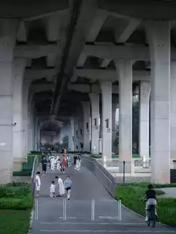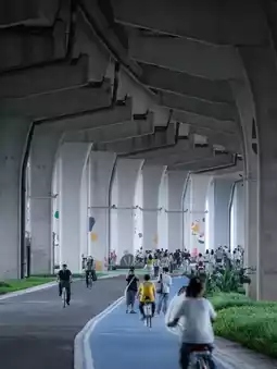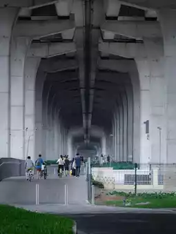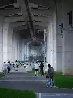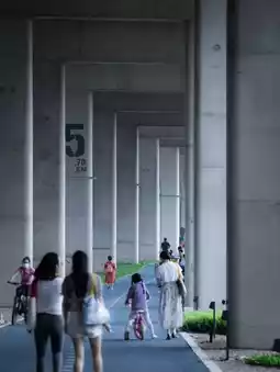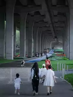 ✔️ The greenway under the bridge is not only suitable for taking photos, but also has special distinctions between walking and cycling paths. Whether it is sunny or rainy, it is very suitable for taking a walk, running, or leisure cycling here.