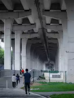 ✔️ When taking photos here, try to bring a telephoto lens, or a mobile phone with a high-power zoom, so that you can better capture the sense of spatial compression and depth at the bottom of the bridge.