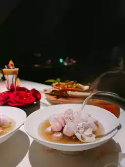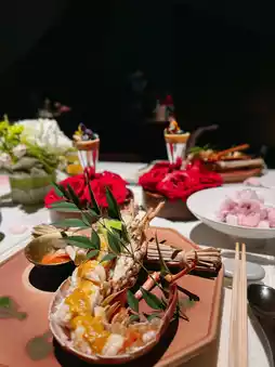 The broth uses hibiscus flowers, clams and maitake mushrooms, which has a fresh and fragrant taste.