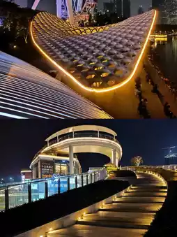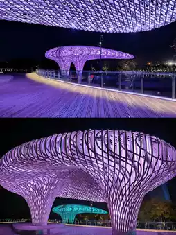 The three mushroom-shaped hollow art buildings in Celebration Square, the lights will switch in different colors/rooms at night, the effect is very fantastic, the photography is very shocking, I personally highly recommend, is a night view can not be missed checkpoint;