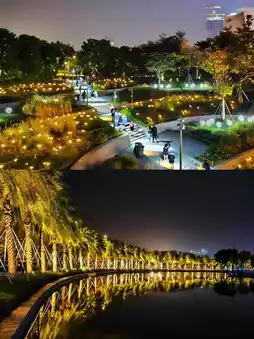 The park has a water-friendly platform and a harbor promenade, where you can see the Ferris wheel, the Qianhai building complex, the Baozhong building complex light night view, and the Qianhai Bay night view sea view.