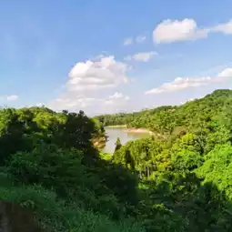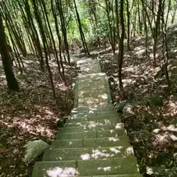 The top of the mountain is 587m high so there are quite a few steps to climb to the very top. When reaching the peak you will be rewarded with a beautiful view of the forest park, you can also see a high speed rail line to the west side of the park, and the city districts in the distance. There are some large reservoir lakes and small streams and waterfalls around the park.