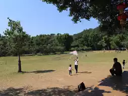 Entering from the Citizen Center entrance, you'll find Kite Plaza. The plaza on the left leads to the mountain. On the expansive lawn of Lianhua Mountain Park, many families fly kites and enjoy family time. If you didn't bring a kite/toy, you can buy one on the spot.