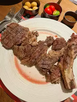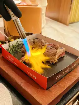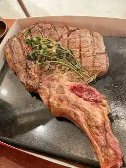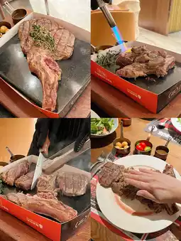 The Tomahawk steak is bigger than the face and weighs 500g💢 enough for two people to enjoy😋A cow can only be cut into 9 to 10 Tomahawk steaks at most. The steak is grilled on the spot by the waiter, and you can see with your naked eyes the change in the texture of the steak on the high-temperature stone slab, and the freshness is transparently visible. It has lean meat, a little fat and tendons. The texture is super delicate and full of beef and milk flavor.