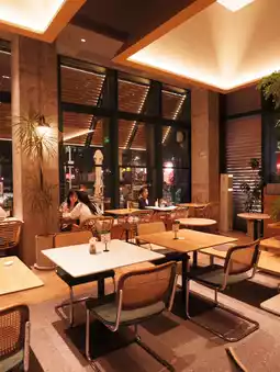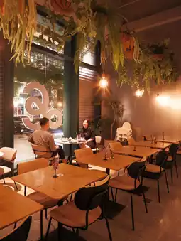 It's decorated with plenty of plants, creating a relaxed atmosphere.