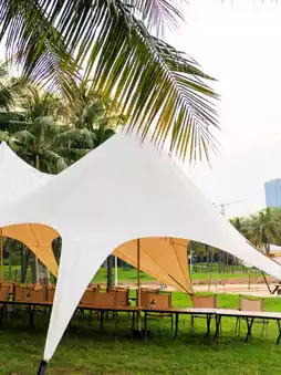 🚤 Without having to travel far, the city center can feel like an island vacation! Under the Hawaiian-style tent, lie on the lazy sofa and enjoy the sunbathing!