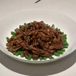 The royal goose intestine with soy sauce is rich in aroma and full of pan! The goose intestine is handled very cleanly, no fishy smell; each goose intestine is quickly fried over high heat to color, the color is oily, and crispy and bouncy, rich soy sauce, must-eat recommendation!