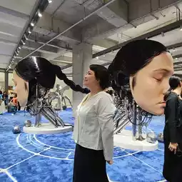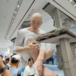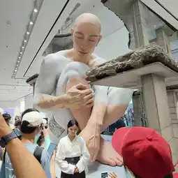 🗿 Recently opened and currently a big hit, the Giant Exhibition is located in the HAUS NOWHERE at the Water Plaza of MixC World. Take Metro Line 1 to Gaoxin Garden Station, Exit A, and enter MixC World. However, there are no clear directions within MixC World. Just head to the left of the central atrium where there are signs leading to the outdoor Water Plaza. The exhibition is free to enter, and no reservation is needed from Monday to Friday. Reservations for the weekend open at 10 AM on Fridays. While it's not as crazy as needing to book in 0.01 seconds, you still shouldn't be too slow. I booked on Saturday for Sunday and only got a slot for 4 PM.