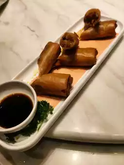 Fried spring rolls with chicken strips