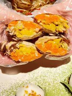Autumn is a good season for eating drunken crabs. We select high-quality hairy crabs. Under the crab shells, there are full crab roe and tender white crab meat. They are pickled using traditional techniques. The mellow aroma of wine and the deliciousness of crabs complement each other, which is very memorable.