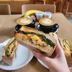 Wake up the next morning for breakfast with super good sandwiches (a choice of pulled pork sandwich🐖 & chicken sandwich🐥 on the day, or baked goods), as well as yogurt, eggs, bananas and a drink. My name is left latte, the latte art is beautiful. Although it was not a buffet, the breakfast was very rich and full.