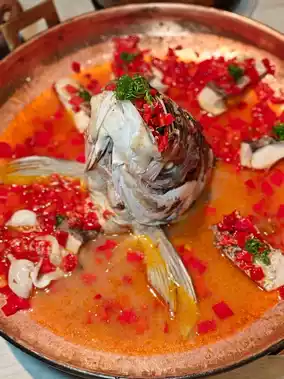 Old altar chopped pepper steamed fresh organic fish head 498