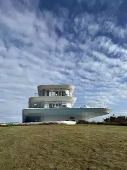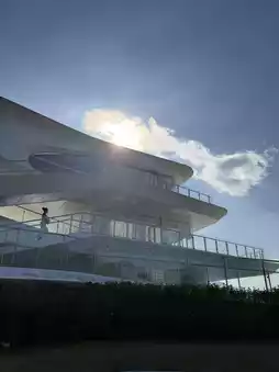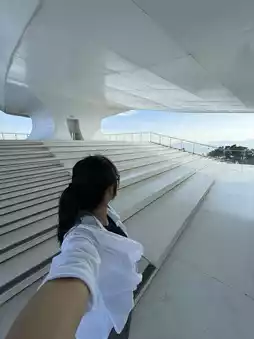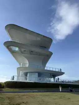 After getting off the bus, you need to walk a short slope to reach the park. The weather is great today, so the blue sky and white clouds, combined with Yunhai Plaza looking like a white ship, make everything look beautiful.