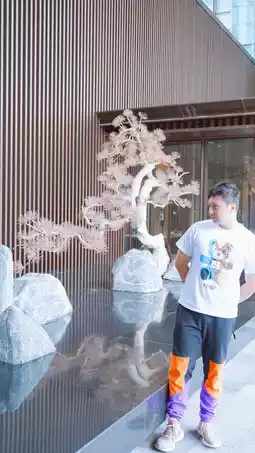 ✈️ The outdoor garden with a water view in the atrium of the DoubleTree by Hilton Shenzhen Airport is truly stunning. I think this is a great place to use montage techniques to shoot ancient costume fantasy-style films. The welcoming pine tree at the hotel entrance, the wabi-sabi-style lounge area in the lobby, the grand spiral staircase, and the artworks and paintings everywhere make it easy to take great photos to share on social media.📸📸📸