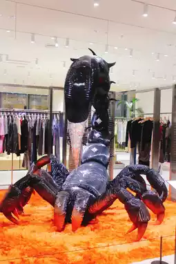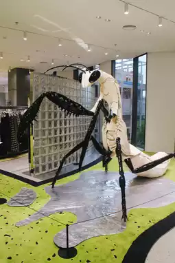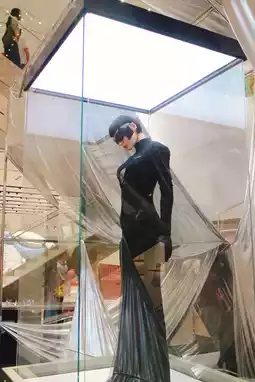 ➠1F: A giant sits among the ruins, with his knees bent, eyes closed, and head bowed. The texture of his skin is so lifelike that it looks like he's meditating! The black-clad woman in sunglasses in the cabinet gives off a sci-fi vibe, which fits the brand's image!