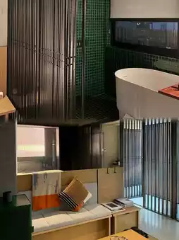 First of all, the design of this hotel is really unique. It is a combination of modern and retro style, and you can feel the artistic atmosphere as soon as you walk in. The hotel is located near Nantou Ancient City, surrounded by historic buildings, but the hotel itself is very modern, and this contrast is super cool.