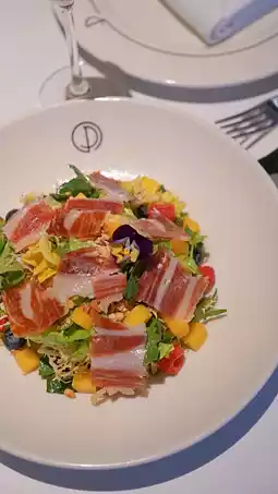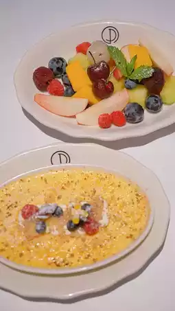 ๐ฎ My friend and I ordered a set menu, including a bread basket, welcome wine, matured cheese, 5J ham salad, lobster seafood soup, 450g water-style ribeye, pizza leaf fries, garlic fried spinach, seasonal fruit platter, and caramel pudding. The set menu was so large that we two adult men couldn't finish it and had to take it away ๐๐๐