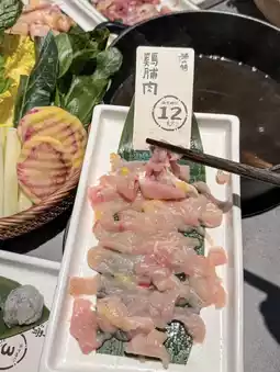 A must-have hotpot companion, the chicken used is free-range for 280 days and freshly sliced on-site! The boneless slices are directly dipped into the hotpot, with different parts such as chicken leg meat and chicken skin. After dipping for just over 10 seconds, the meat is tender and delicious. This is what Guangdong people call 'chicken with chicken flavor.'