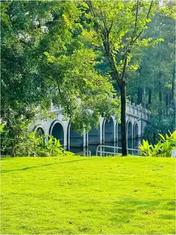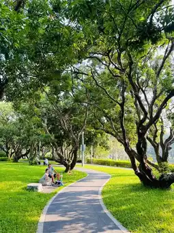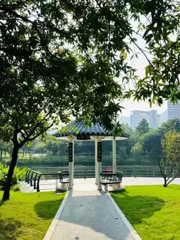 Sihai Park, a treasure park in Shekou, Nanshan District, Shenzhen, has grasslands, flowing water, winding lakeside paths, and pavilions by the lake, making it a paradise in the city center.