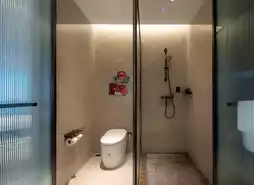 The room is even better! The room is spacious, the bed is soft and clean, and it is very comfortable to sleep on 🛏️. The room is full of decoration details, and the smart devices are also very complete. You can control the lights and curtains with your voice, which is very high-tech 🤖. The bathroom is dry and wet separated, and the quality of toiletries is also good, with a faint fragrance.