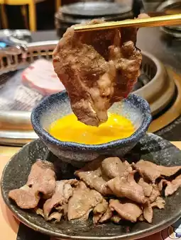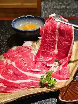 - Thin slices of M9 wagyu beef, cooked after a few flips! The soft and tender texture melts in your mouth, and it tastes even better when paired with egg yolk!