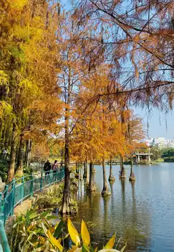 Currently, the cypress trees in the park are in the color gradient stage, with goose yellow, golden yellow, and brown and red intertwined together, like a slowly unfolding oil painting. As you stroll along, you will hear the rustle of fallen leaves under your feet, and the colorful branches and leaves above your head, which makes you intoxicated. If you want to witness the magnificent scenery of the bald cypress forest fully dyed, you may as well wait patiently.