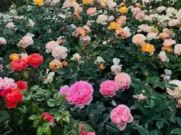 A riot of colorful flowers bloom in unison, creating a tapestry of natural beauty. The red ones are like fire, the pink ones like rosy clouds, and the white ones like snow, all intertwining to form a stunning natural painting.