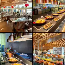 Of course, a vacation wouldn't be complete without delicious food 😋. For dinner, I chose Mangge Southeast Asian Restaurant. The set menu for two, just over 400 yuan, was incredibly filling. Enjoy the spicy and sour Tom Yum Goong 🍤, their signature Thai Royal Coconut Curry Chicken, the must-try pancake-grilled sea bass 🐟, as well as flying water spinach, fried shrimp crackers, and a pancake coconut milk cake 🍮—a truly satisfying meal. In the morning, enjoy a leisurely and delicious buffet breakfast at Yuan Coffee to recharge your energy for an energetic holiday.