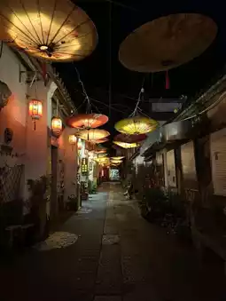 I recommend going in the late afternoon to evening. The whole town will be decorated with colorful lights, allowing you to take pictures both during daylight and with the lantern lights.