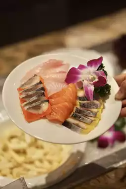 Steamed pomfret, abalone sauce goose palm, garlic ribs...