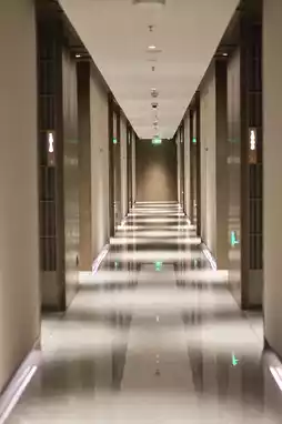 The hotel has a gym, laundry room, etc.