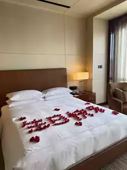 The bedroom of the suite is equally stunning. The soft big bed is like a gentle nest, lying on it can instantly eliminate the day's fatigue. The texture of the bedding is super good, silky, soft, skin-friendly and comfortable. The bathroom is also very spacious, with a separate bathtub and shower area. The toiletries are all high-end brands and are first-class in use.