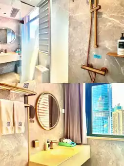 The room is warm and comfortable, the bedding is soft and skin-friendly, and the mattress is moderately firm. Lying on it instantly heals you and relieves the fatigue of a busy day. The room is also well soundproofed, so you can sleep well at night. The smart devices are complete, and you can control the lights and air conditioning with your phone, which is very convenient. The bathroom is dry and wet separated, and the toiletries are of good quality. You will feel refreshed after taking a shower.
