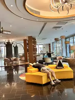 The overall space of the hotel is very elegant, with an art book bar in the lobby and Hakka floral elements on the walls of the corridor.