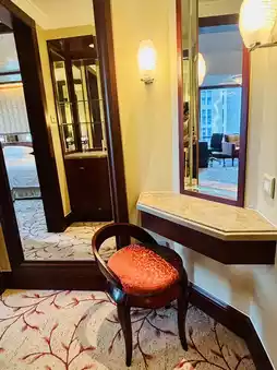 The room also includes a walk-in closet, which is very convenient for guests staying for an extended period.