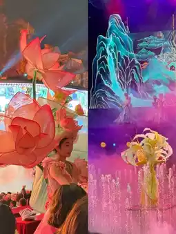 Floor", "Fan Building", "Zhouqiao Night Market", "Baddress East and West Market", etc., among which the full discount performance program Dragon and Phoenix Dance in China: The background of the culture is composed of different dance special effects, and there are actually 3D effects.