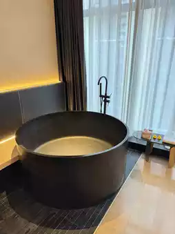 Since it's called a Lab, I decided to conduct an experiment during my stay. As soon as I opened the door, I saw a bathtub in front of me, and half of the view outside the window was of Shenzhen Bay 😃. I used the bath bomb provided by the hotel (30 RMB each), filled the tub halfway, and soaked in it before going to bed. It made me feel warm all over 😌.