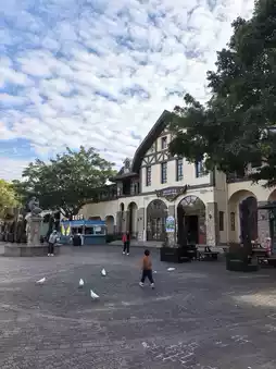 🌈 Interlaken Railway Station and Interlaken Town, German-style buildings, and white pigeons on the square in front of the railway station. Interlaken Lake is very beautiful, with clear water and German-style buildings around the lake reflected in the water. The photos are amazing.