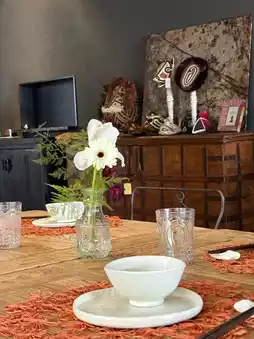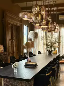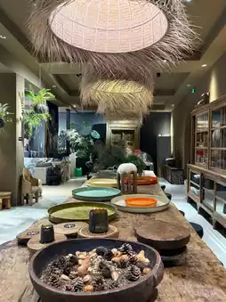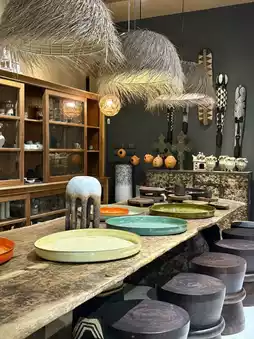 In the restaurant, one side is the dining table, while displaying different works, the shopkeepers collected utensils from all over the country.