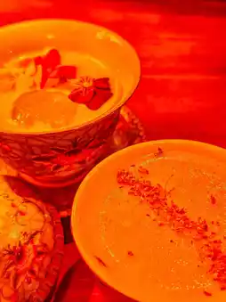 The drinks are Chinese specialty drinks, the name is named after the Wong Kar-wai movie ~ The cocktails at my location are named Ruan Ling Yu and Night Dark Fragrance, with Chinese tea cups that look beautiful, taste good, mellow ~ alcohol level is not very high ~