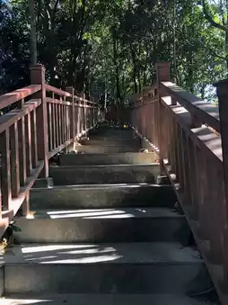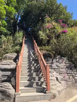 After the third flight of stairs, you can see the top of the mountain, so everyone habitually runs to the top of the mountain along the main road on the right. In fact, there is a fourth flight of stairs opposite the exit of the third flight, but you have to walk back about 10 meters, which is often overlooked. This flight of stairs actually leads to another mountain, and then down to the entrance of the "Bai Chi Tian Ti" (Hundred-foot Ladder) from the other side.