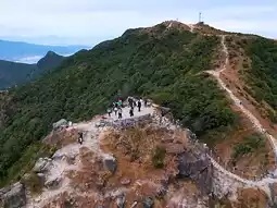 14:45 Reached the main peak, 869 meters above sea level. Looking into the distance, all the mountains seem small. After a good rest, prepare to go down the mountain.